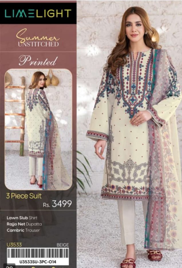 Lime Light – Beign Un-Stitched Lawn Slub Suit