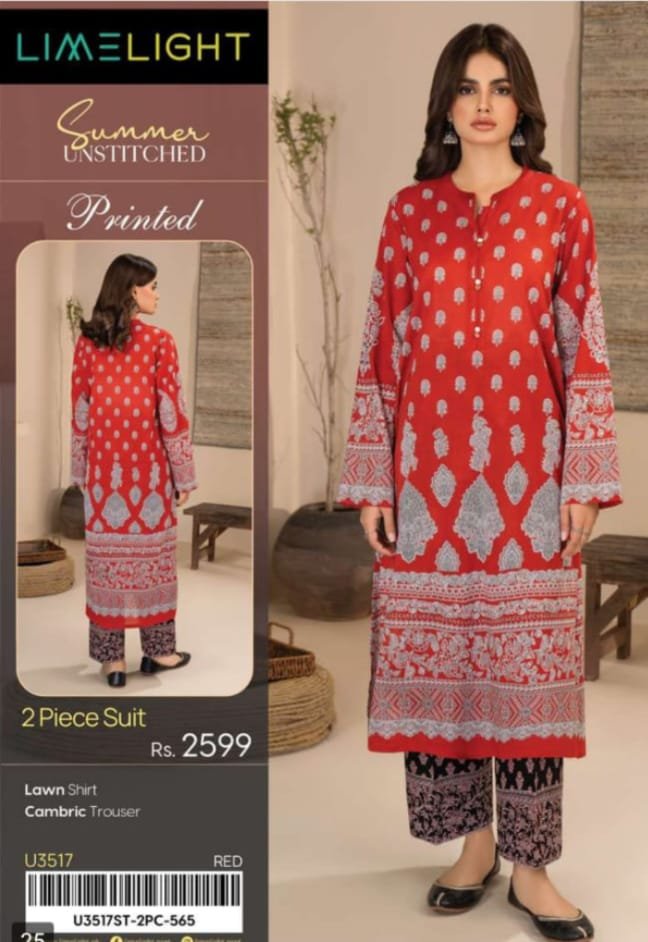 Lime Light – Red Cambric Lawn Printed Suit
